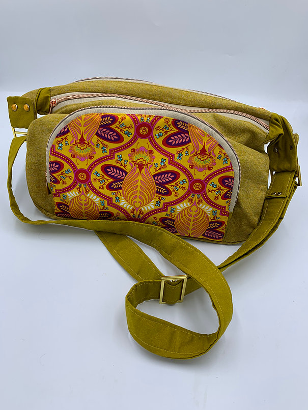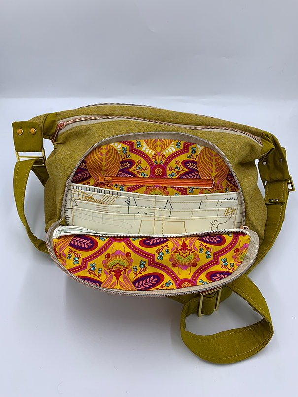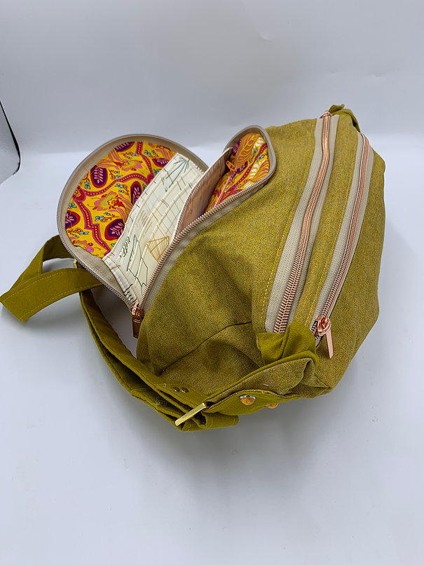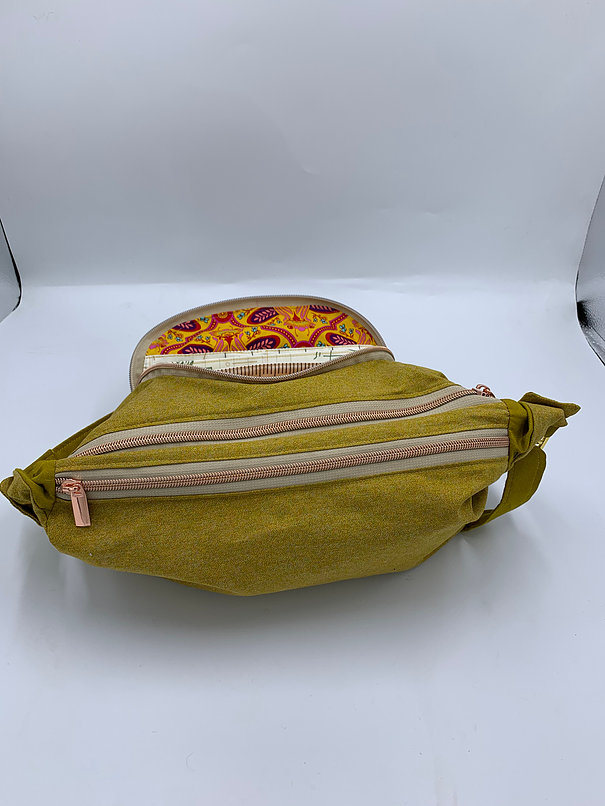 OK… Let me just say- “This bag is amazing” There is something I do NOT like about it- I should have used a different stabilizer to give it substance- For that very reason- thats why it is priced lower. I cannot stand up on its own- I just think it should- beautiful dual colored fabric- I used rivets to dress it up, rose gold and gold hardware- Trust me when I say- THESE PICS GIVE THIS BAG NO JUSTICE! Just the front half moon zip- when opened- has tons of slots and ANOTHER zip pocket! Grab this- because when I make it again- the price will be higher due to the stabilizer.